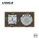 Double combinaison : double interrupteur tactile 2 boutons et 1 prise de courant avec terre - Europe sur une plaque double qui permet d'allumer ou d'éteindre 2 éclairages par simple effleurement du doigt et d'alimenter en toute sécurité tous vos appareils domestiques.