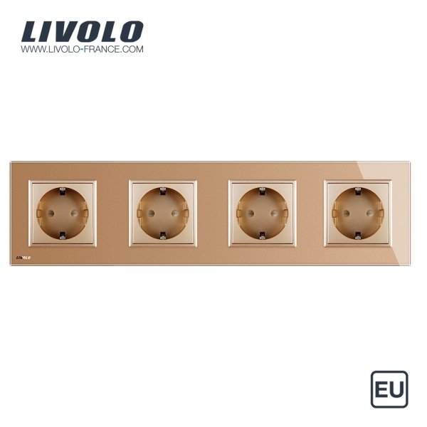 Quadruple prise de courant avec terre (Europe) sur une plaque quadruple (4 prises) qui permet d'alimenter en toute sécurité tous vos appareils domestiques.