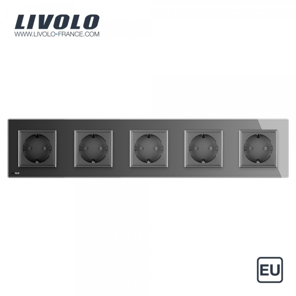 Quintuple prise de courant avec terre (Europe) sur une plaque quintuple (5 prises) qui permet d'alimenter en toute sécurité tous vos appareils domestiques.