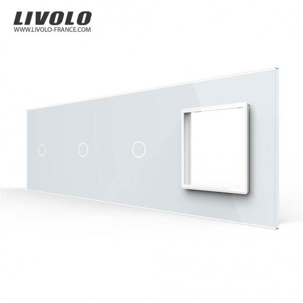 3 emplacement pour module tactile 1 bouton et 1 emplacement pour prise.