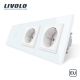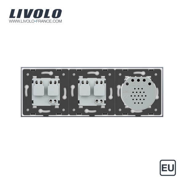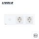 Triple combinaison : 1 interrupteur tactile 1 bouton et 2 prises de courant avec terre - Europe sur une plaque double qui permet d'allumer ou d'éteindre un éclairage par simple effleurement du doigt et d'alimenter en toute sécurité tous vos appareils domestiques.