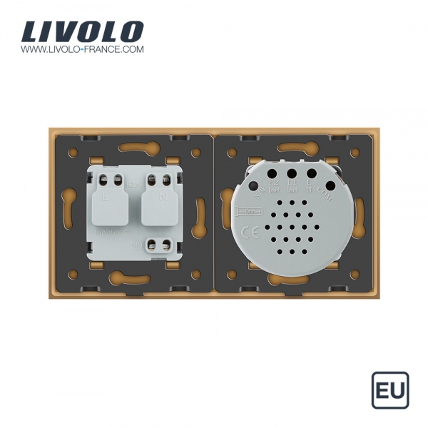 Double combinaison : 1 interrupteur tactile 1 bouton et 1 prise de courant avec terre - Europe sur une plaque double qui permet d'allumer ou d'éteindre un éclairage par simple effleurement du doigt et d'alimenter en toute sécurité tous vos appareils domestiques.