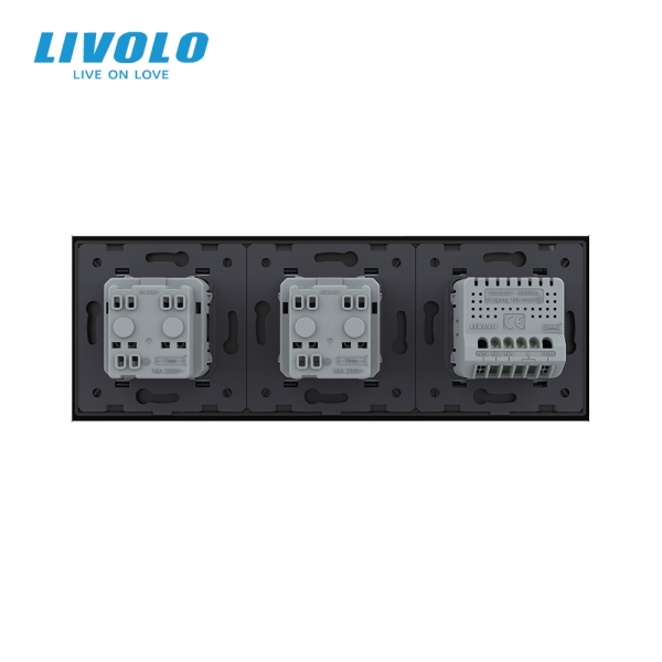 Triple combinaison : double interrupteur tactile 2 boutons et 2 prises de courant avec terre - Europe