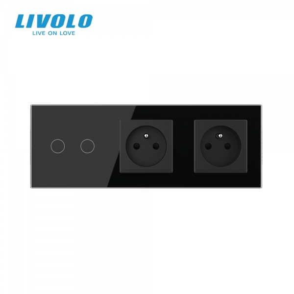 Triple combinaison : double interrupteur tactile 2 boutons et 2 prises de courant avec terre - France