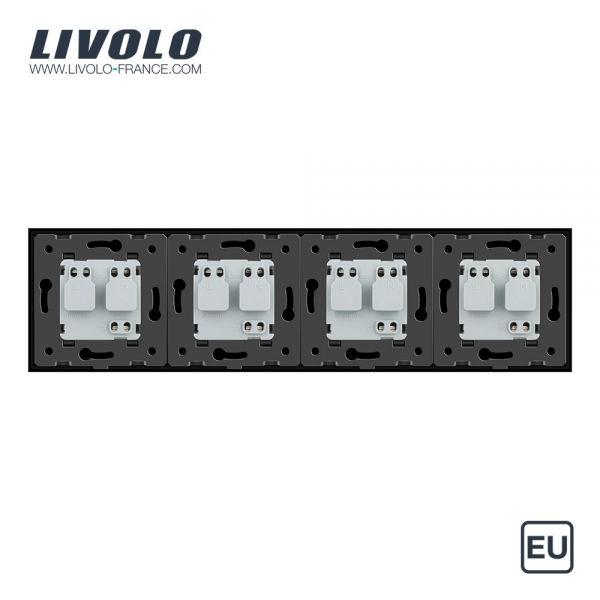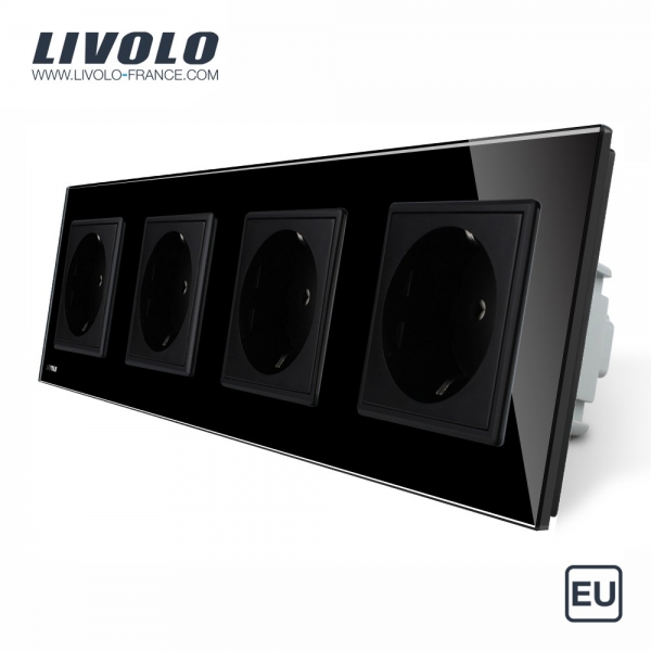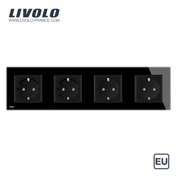 Quadruple prise de courant avec terre (Europe) sur une plaque quadruple (4 prises) qui permet d'alimenter en toute sécurité tous vos appareils domestiques.